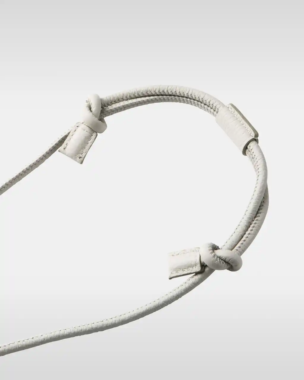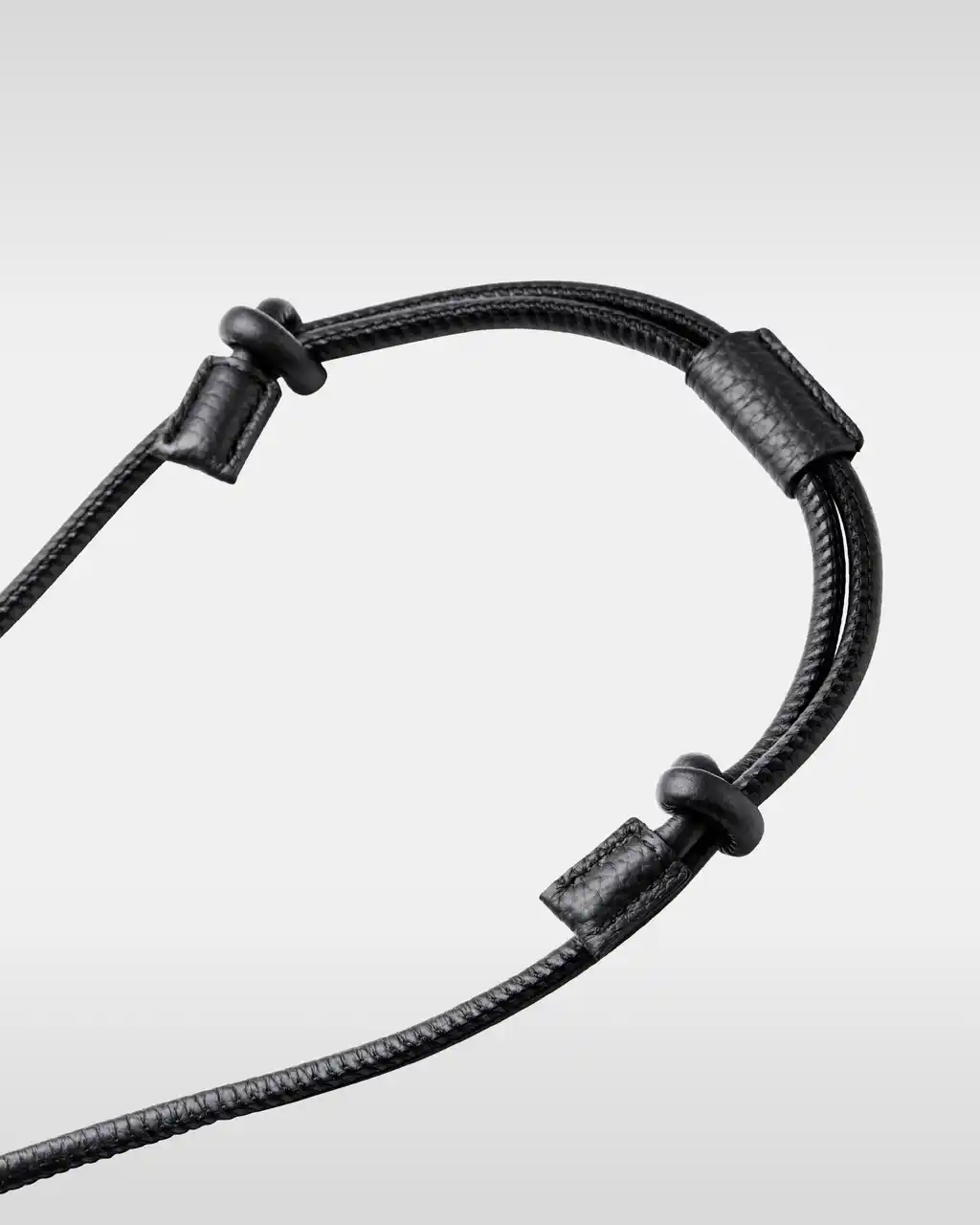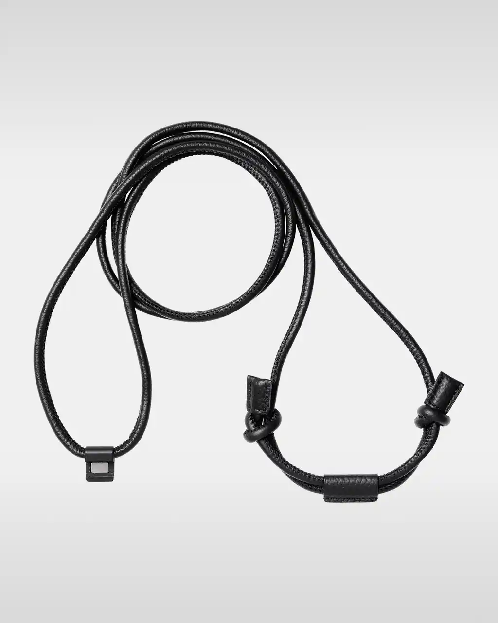 丸みのある革紐デザインはそのままに、両端を引くだけでスマートに長さ調節できる機構を追加。身長や体格を問わず快適に使用できます。 |