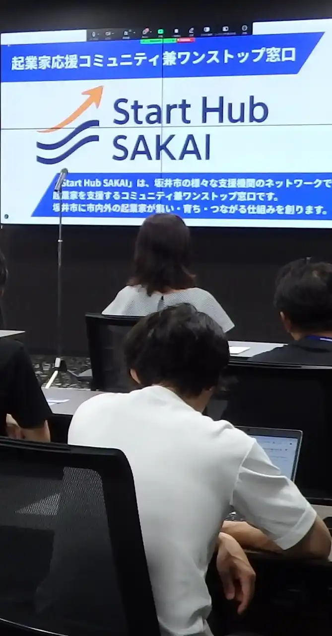 キックオフイベントの冒頭、プロジェクターに映しだされた「Start Hub SAKAI」のロゴマーク |