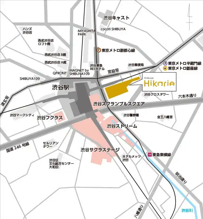 ◆公共交通機関からのアクセス JR線・京王井の頭線「渋谷駅」と2階連絡通路で直結。 東京メトロ銀座線「渋谷駅」と1階で直結。 東急東横線・田園都市線・東京メトロ半蔵門線・副都心線「渋谷駅」B5出口と直結。 |