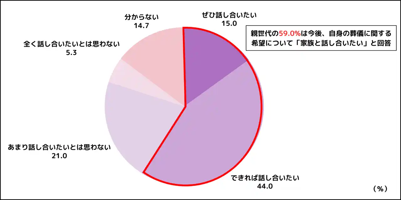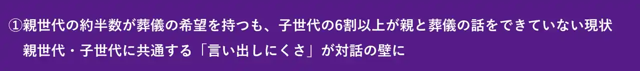 1.親世代の約半数が葬儀の希望を持つも、子世代の6割以上が親と葬儀の話をできていない現状 |
