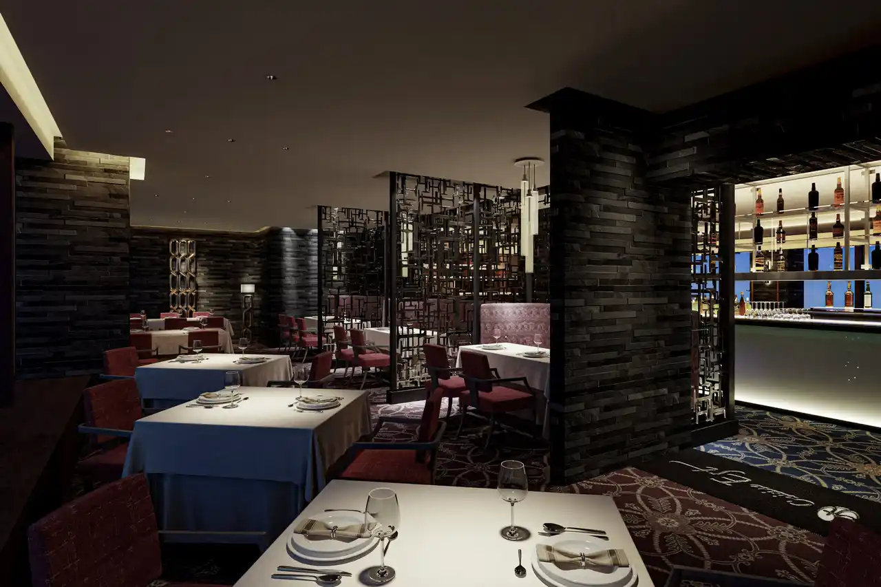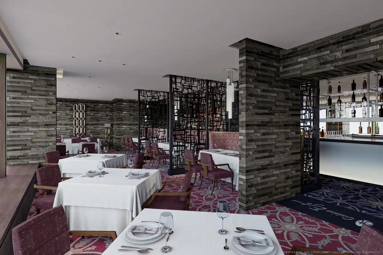 オープン以来のコンセプトである「Art&Rich」を継承しつつも、オーセンティックで落ち着いた客席に新たに気品のあるボルドーカラーをアクセントとして加え、より一層フォーマルで華やかさを高めた店内となります。こだわりの美食と洗練された空間、上質なおもてなしで「ハレの日」の会食にふさわしい贅沢なひとときを演出いたします。 |