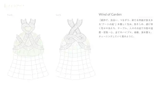 「クオリア=感じること」を言語に頼らず記憶・思考・表現する“クオリアネイティブ”として活動するアーティスト。 来場者全員でドレスをつくる体験型の展示です。 当日は、クオリア研究所の所長”さわくん”が、「Tokyo Art Garden」について説明をしてくれます。 |