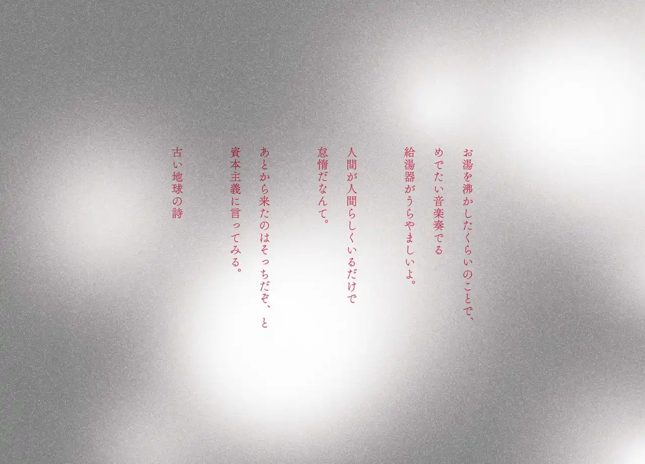 有田絢音(詩)と内野渚彩(絵)による、週に1回、詩と絵を届けるユニットです。 |