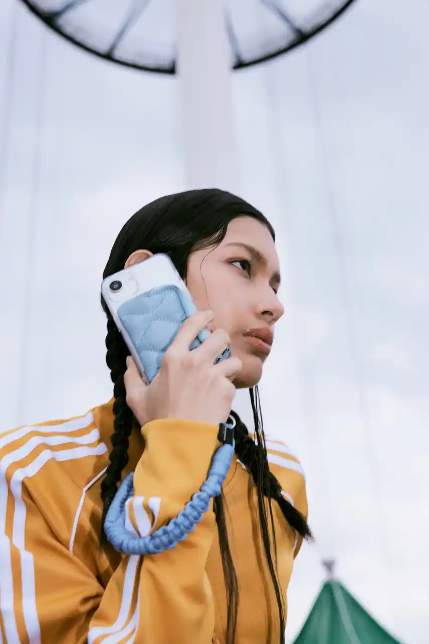 キルティングのポケットとクリアケースの異素材感を楽しめます。 |