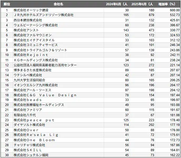 株式会社SalesNow(本社:東京都渋谷区、代表取締役:村岡功規、以下「当社」)は、国内540万社の企業情報を完全網羅した日本最大級のデータベース「SalesNow DB」より、人口の多い上位30都市を対象とした「従業員数増加率ランキング」を発表しました。本リリースでは、各都市別のデータをもとに、今回は「福岡市に本社を置く企業」を対象に、従業員数の増加傾向にフォーカスします。