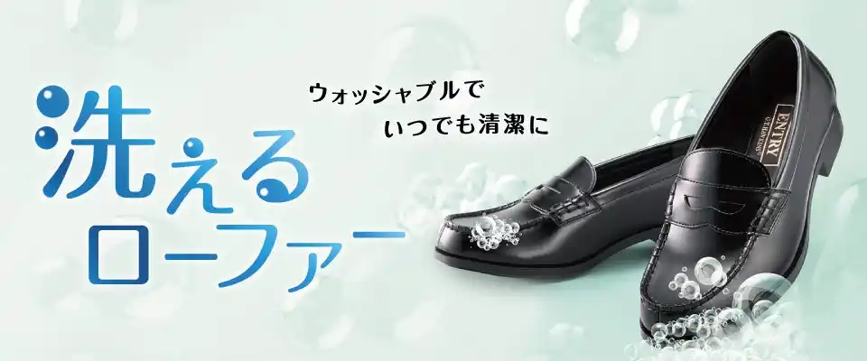 「HAWKINS 洗えるローファー」は、手入れのしやすさにこだわった学生用ローファー。中敷きを取り出して丸洗いが可能、シューズケアの手間が掛からない一足です。 |