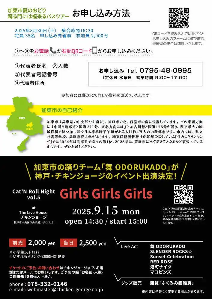 お申し込み方法:加東市観光協会へ下記1.~4.を電話かチラシに記載のQRコードからお申し込みください。 |