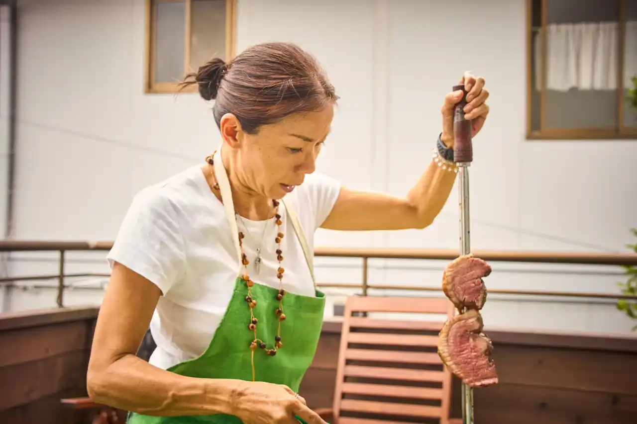 プライベートでシュラスコを振舞う貝原 那奈氏