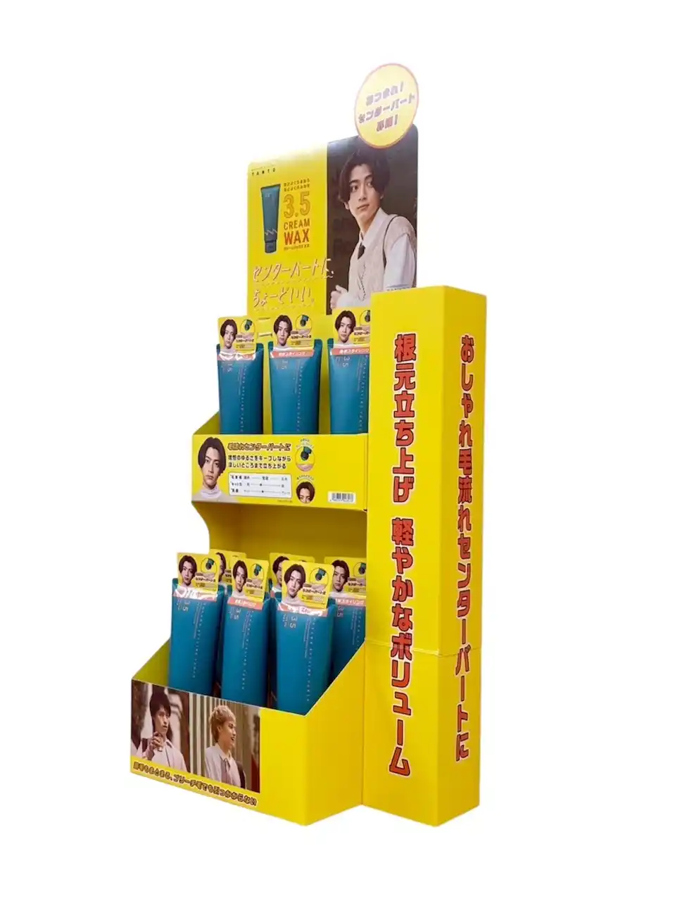 「クリームワックス 3.5」のオリジナル什器を展開すると共に、一人ひとりの“なりたいスタイル”に合わせて「毛流れ」と「毛束」の優先順位で選択できる「タント」計4アイテムの販売什器を制作。スタイルごとに必要な要素の違いを明確に訴求することで、自分らしい“なりたいスタイル”に合ったアイテム選定のサポートを強化します。 |