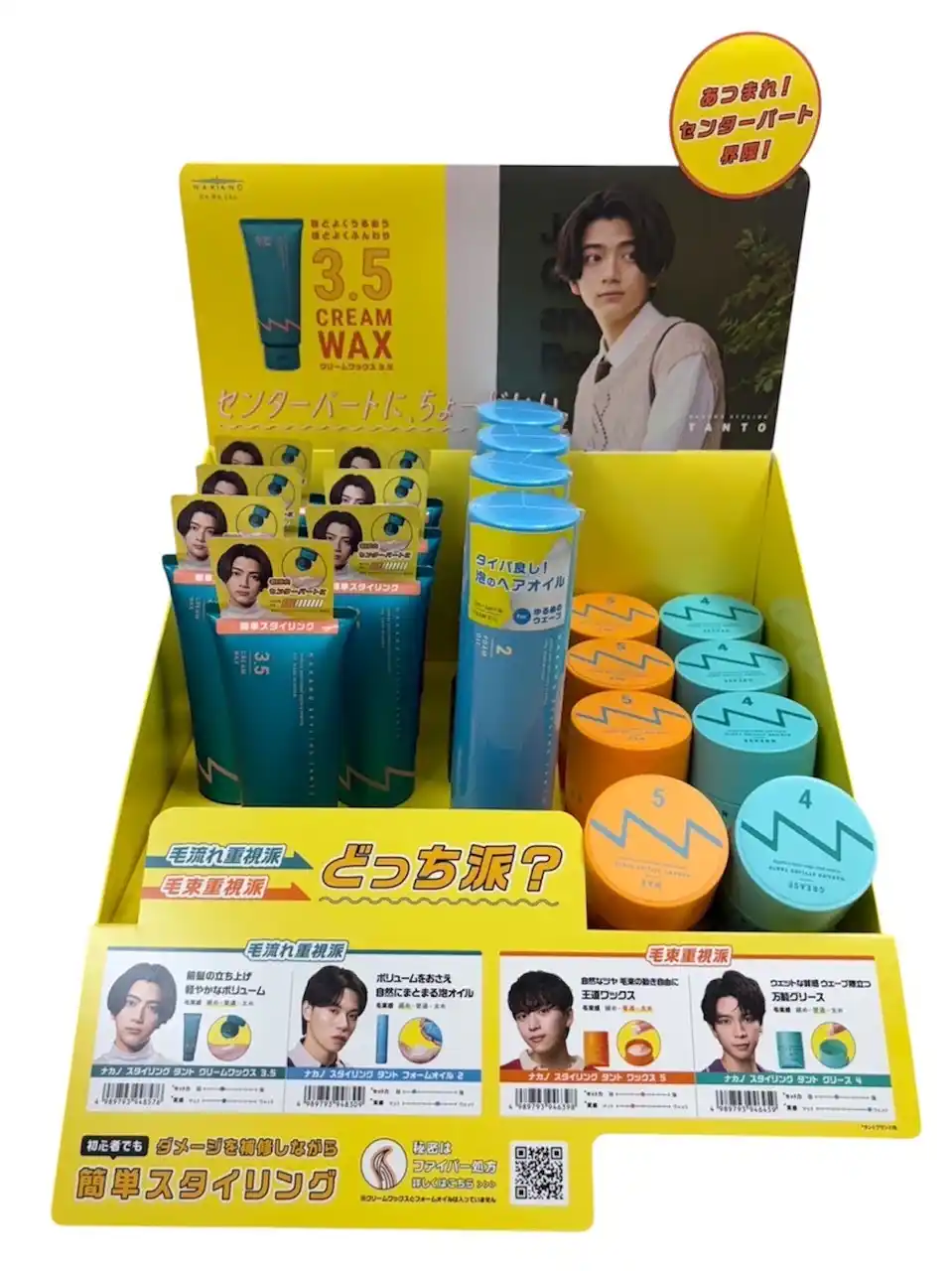 中野製薬株式会社(本社:京都市/代表取締役社長:中野 孝哉)は、一般流通向け商品として販売しているヘアスタイリングブランド「ナカノ スタイリング タント(以下、タントと呼ぶ)」から、Z世代男性の中で人気の高いヘアスタイル「ゆるい毛流れのセンターパート」を簡単に作ることができるアイテム「ナカノ スタイリング タント クリームワックス 3.5(以下、クリームワックス 3.5と呼ぶ)」を2025年8月30日(土)より新発売します。 |
