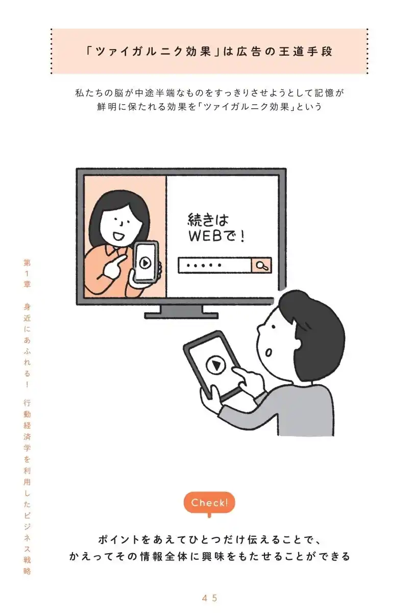 豊富なイラストでわかりやすく解説。「どうして『くわしくは○○で』が気になるのか?」「なぜ推しのグッズをつい買い集めてしまうのか?」といった“つい”の行動も、行動経済学の視点でスッと理解できます。