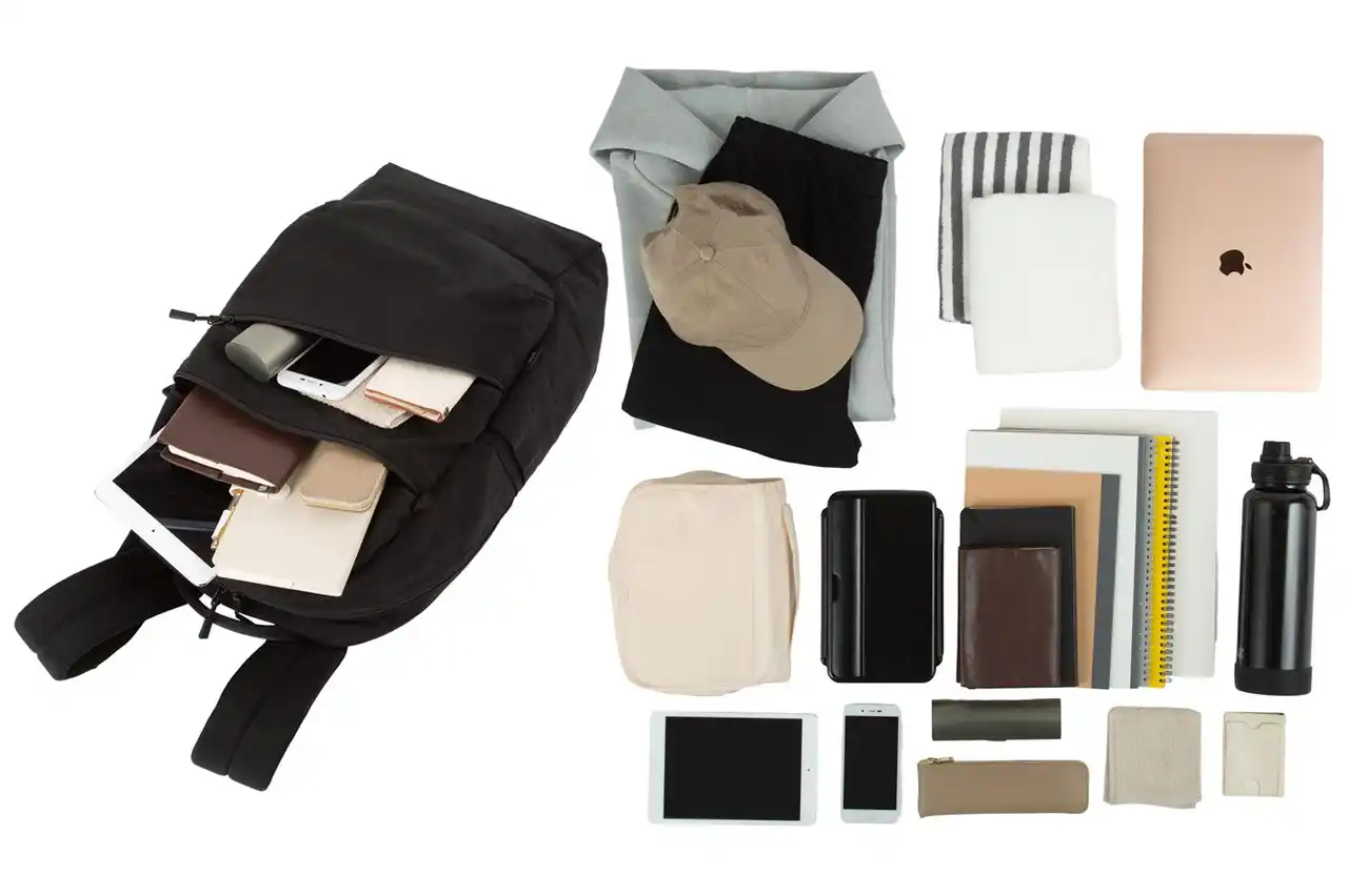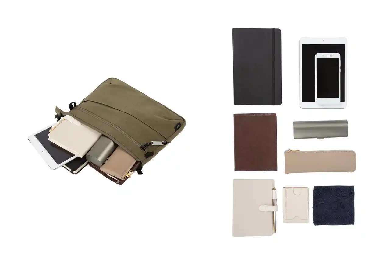 左から、スリングバッグ、リュックサック、トートバッグ横、ショルダー小 |