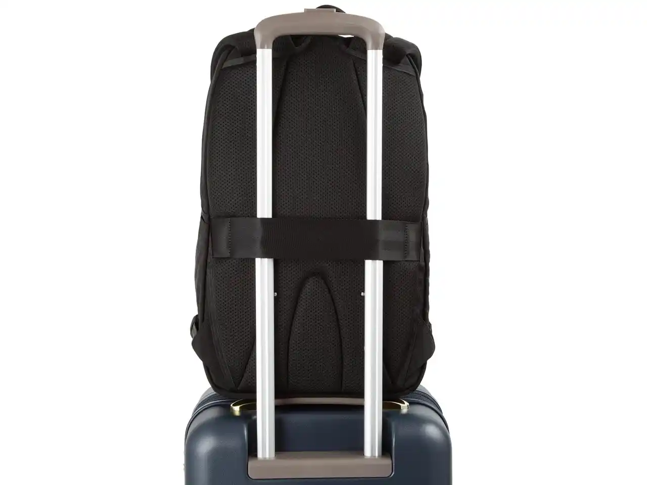 トート・リュック型には、スーツケースのプルドライブハンドルに固定できる「セットアップベルト」を装備。 |