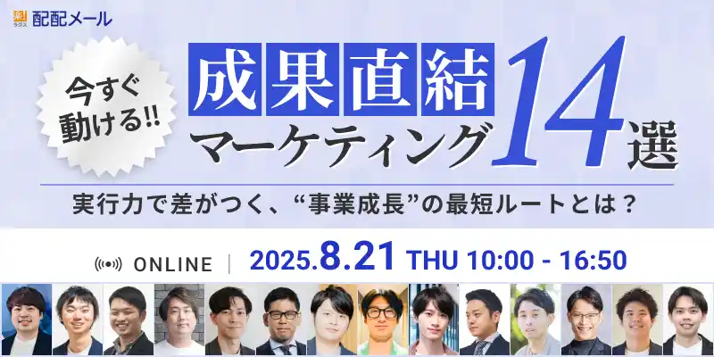 ■今後のセミナー情報|2025年8月21日(木)10:00-16:50「成果直結マーケティング14選~実行力で差がつく、“事業成長“の最短ルートとは?~」に登壇!