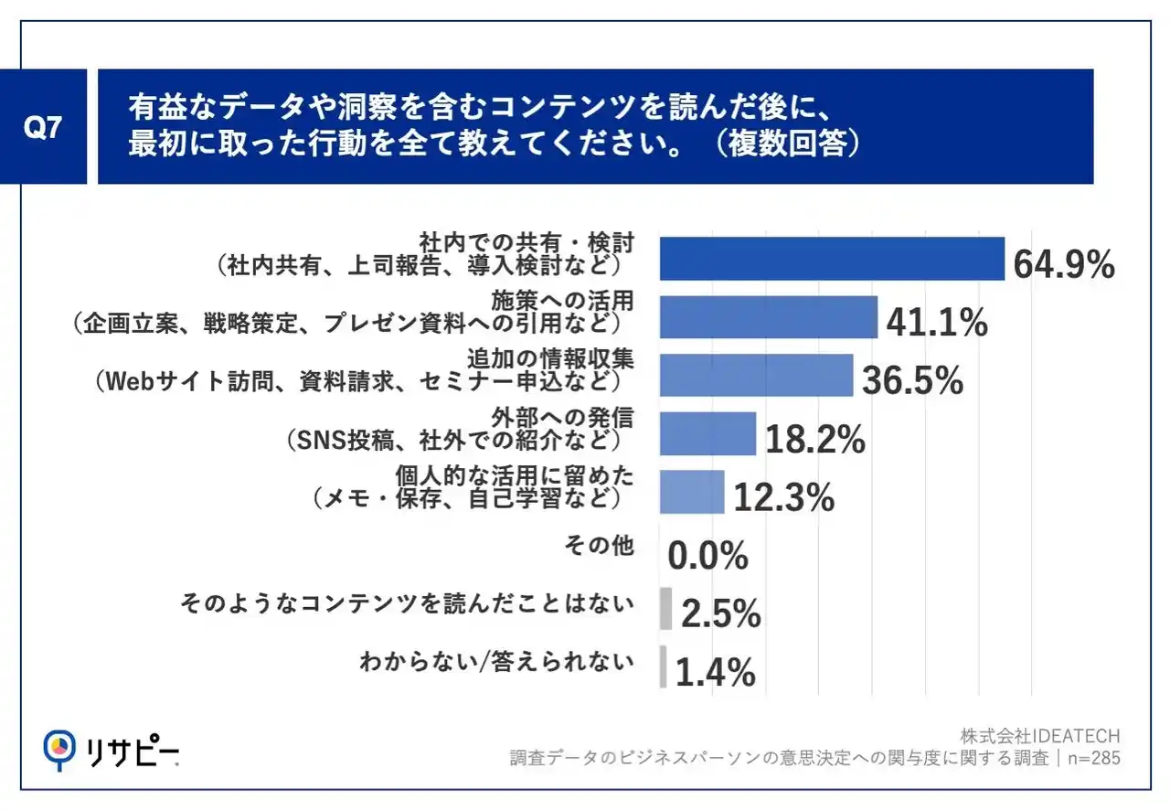 ■有益なデータや洞察を含むコンテンツを読んだ後、64.9%が「社内での共有・検討」を実施 |