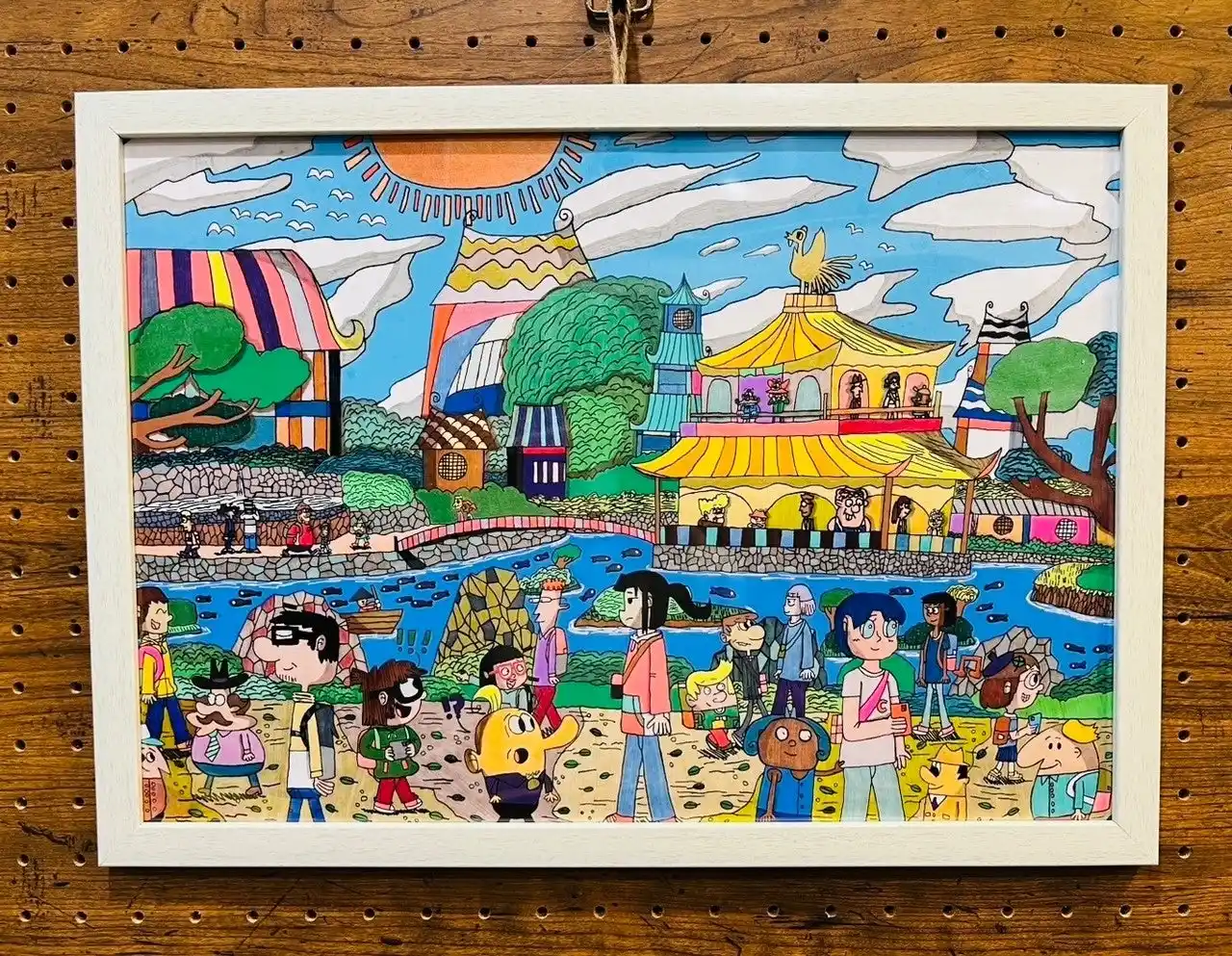 制作は生活と地続きだ。 ある日には通勤途中の街の色をモチーフにし、ある時は家族との会話からヒントを得る。 色選びのひとつにも、その人だけの記憶や感覚が宿っている。 制作の一日は静かな集中から始まり、筆やペンが紙に触れる音が少しずつ場を満たす。 休憩時間には仲間同士で作品を見せ合い、感想を言い合う笑顔が広がる。 彩音戯画(カラートーンアート)では、原画のみの1点もの販売にこだわり、唯一無二の価値を提供していく。 初めて店舗に並ぶ瞬間、制作者は「自分の色が街に出た」という誇りを胸に抱く。 |