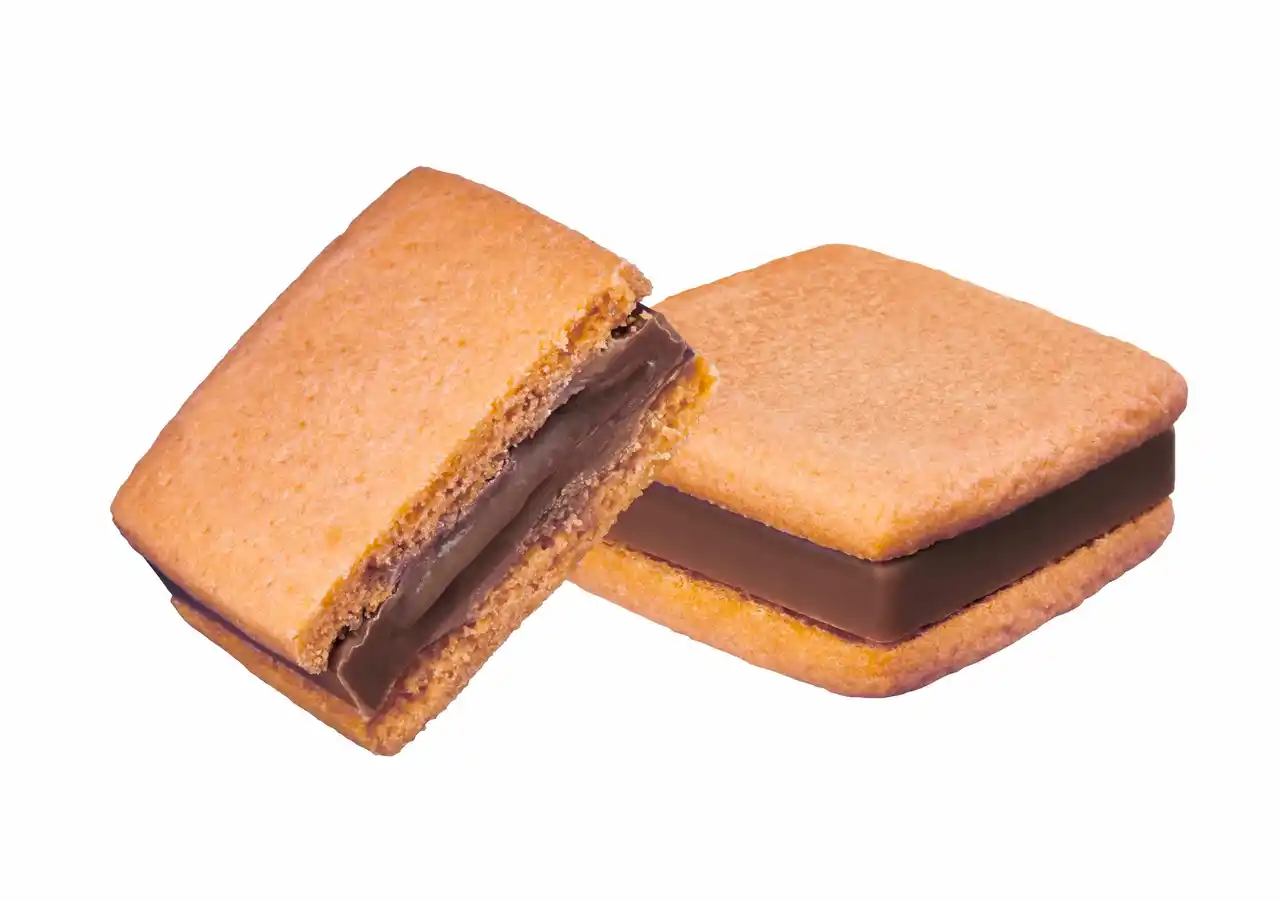ミルクチョコレート白餡 優しい甘さのミルクチョコレートをあっさりとした白餡に練りこんで作ったチョコレート餡と、香ばしく焼き上げた抹茶が香る最中皮を別々に包装しました。食べる直前にサンドすることでサクサクの食感をお楽しみいただけます。 |
