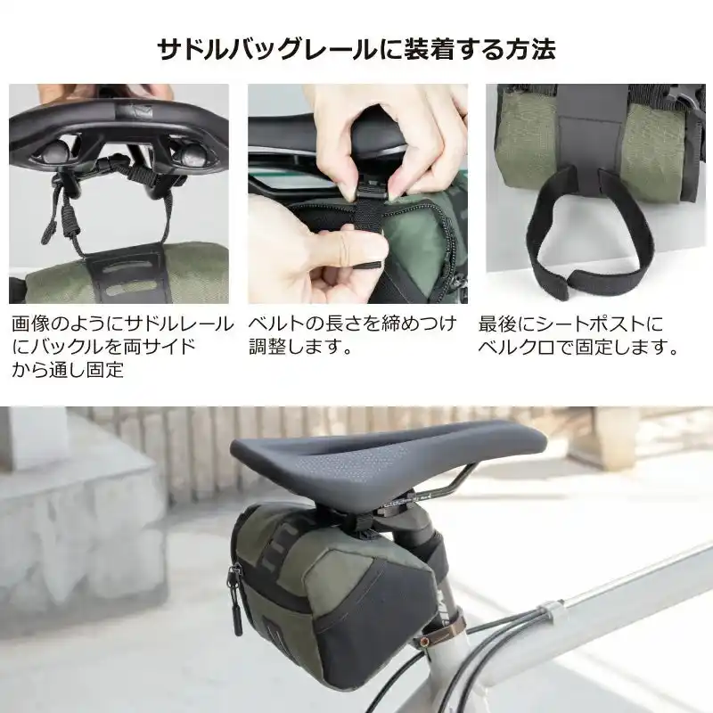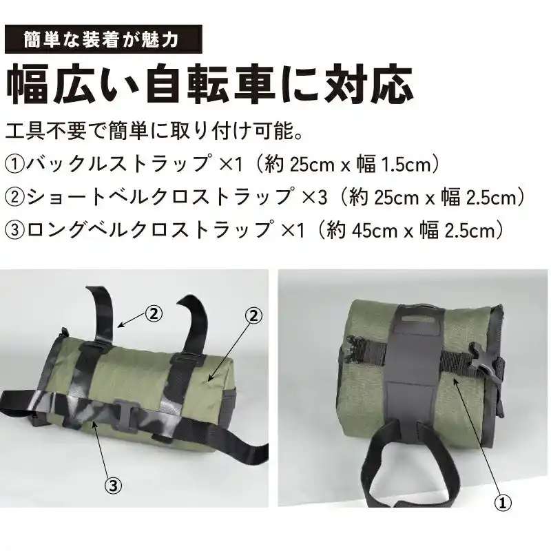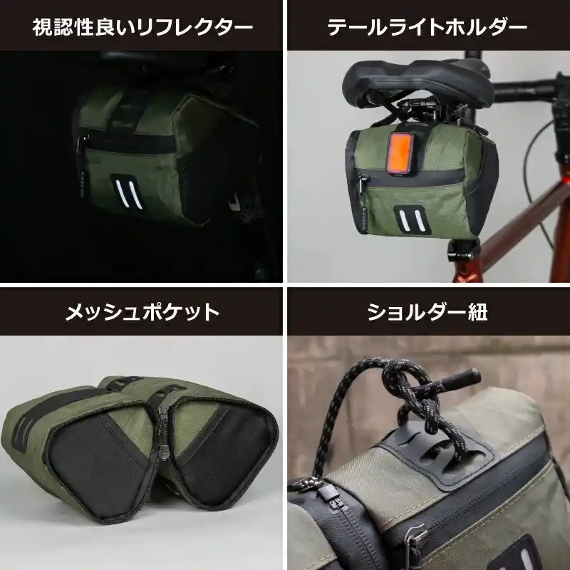 1.フロントバッグ(ハンドル)2. トップチューブバッグ3.サドルバッグ4.ショルダーバッグ |