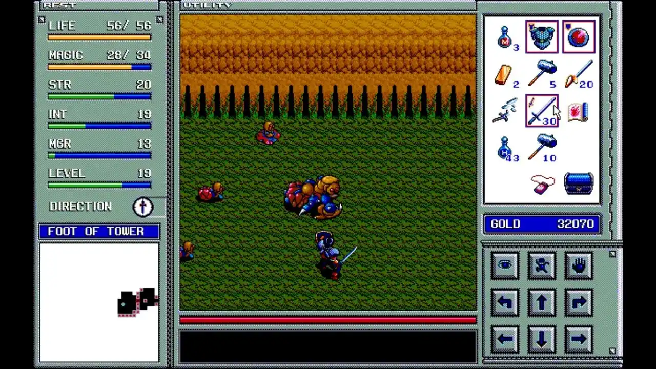 なおオリジナル版と比較すると、音源周りのパワーアップ、一部BGMの変更、落とし穴の視認性の向上、休息に併せてモンスターの体力が回復するような調整が盛り込まれており、より楽しめるブランディッシュに仕上がっています。 |