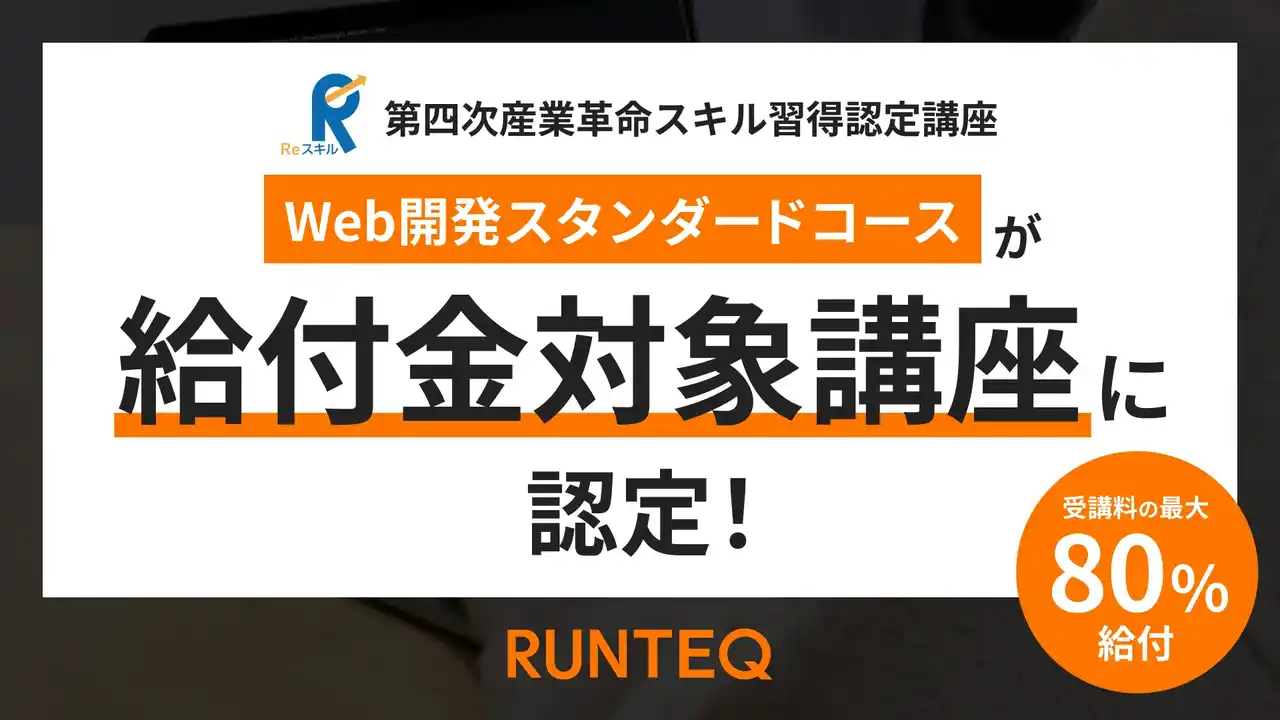 RUNTEQの『Web開発スタンダードコース』は、専門実践教育訓練給付制度の対象講座に認定されています |