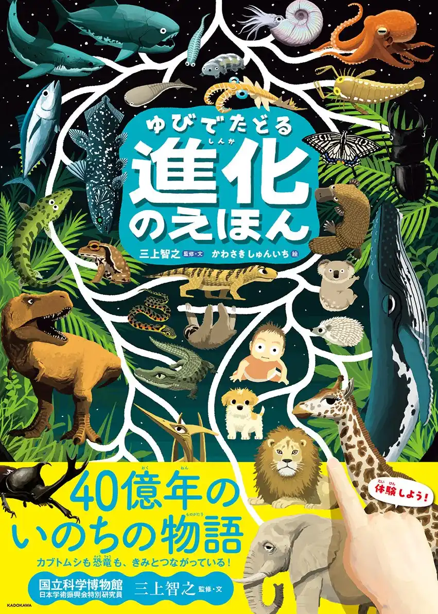 株式会社KADOKAWA(本社:東京都千代田区、取締役 代表執行役社長 CEO:夏野剛)は、『ゆびでたどる進化のえほん』(監修・文:三上智之、絵:かわさきしゅんいち)の重版を決定いたしました。