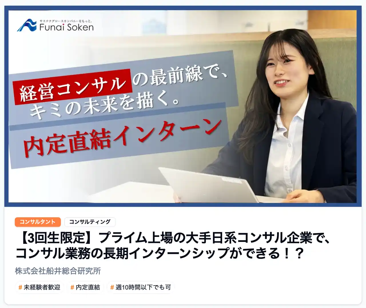 この思想を形にしたのが【インターン.com】です。「インターン参加→内定!」を当たり前に。企業は現場での適性・カルチャーフィットを見極め、学生は自分らしく活躍できる環境を確信してから踏み出す。就活の入り口を“面接室”から“実務の現場”へ移すことで、働くことをもっと理想的で前向きな選択に変えていく--それが私たちの出発点であり、β版リリースに込めた約束です。 |