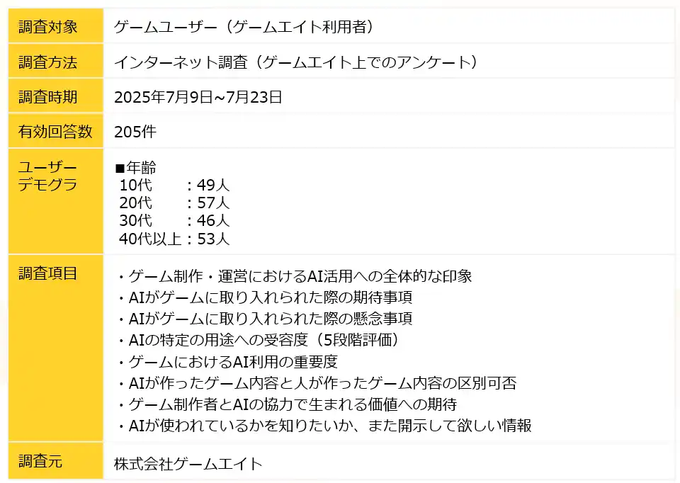 株式会社ゲームエイト(本社:東京都渋谷区、代表取締役:沢村 俊介、以下「ゲームエイト」)は、ゲームユーザーを対象に、ゲーム領域における生成AI活用の意識調査を実施しましたのでお知らせいたします。