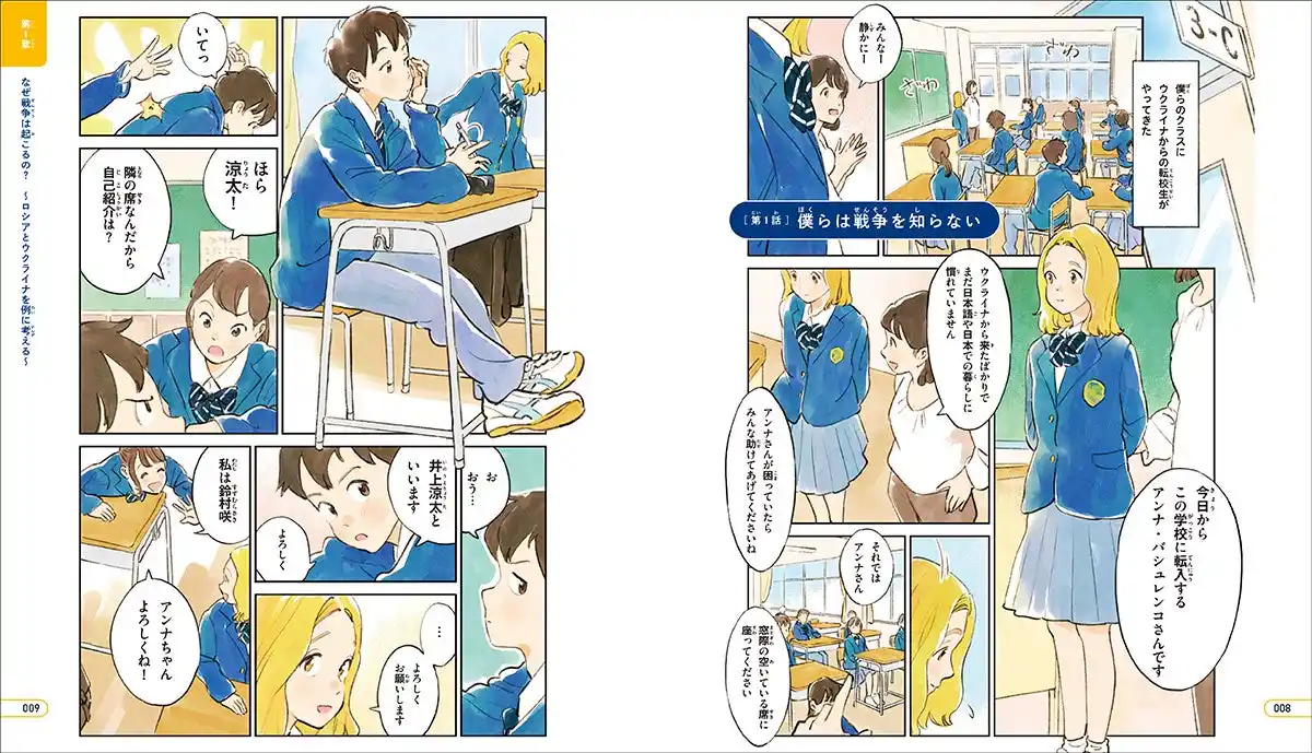 そういう意味で、『僕らは戦争を知らない』は、漫画の場面設定がよかったですね。「自分のクラスにウクライナからの避難民がやってくる」という設定は、日本の子どもたちがウクライナで起こっていることを臨場感たっぷりに体験できるように工夫されていると感じました。 |
