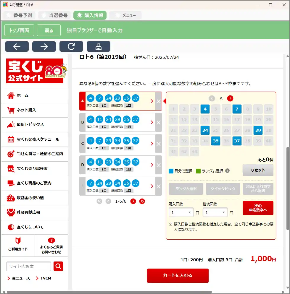ロト6をスムーズに購入できる「自動入力ブラウザ」 |