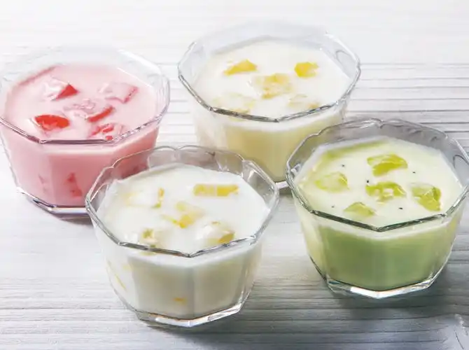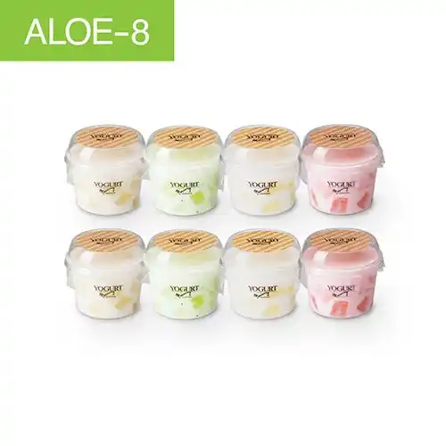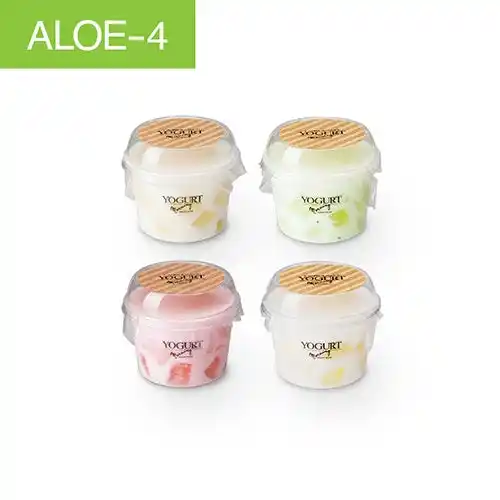 アロエヨーグルトは店舗でも人気の一品。当社が使用している「アロエ葉肉」は大粒でみずみずしく食べ応えがあります。特有の食感と爽やかな風味が魅力の「アロエ」の風合いを活かしつつ、本シリーズでは4種のヨーグルトを組み合わせました。 |