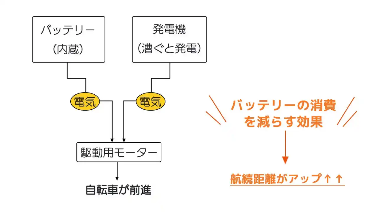 独自のペダル発電機構(特許取得済)は、先代T250でも高い評価を獲得してまいりました。「ENNE T600GR」も同様の発電機能を搭載し、発電効率を従来比8倍以上。都市の移動と環境への配慮を両立するハイパフォーマンスモデルです。 |