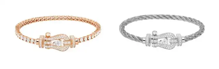 バックル:18Kピンクゴールド、ダイヤモンド ¥3,278,000~(別売りダイヤライン:¥2,739,000) / バックル:18Kホワイトゴールド、ダイヤモンド ¥3,399,000~(別売りケーブル:¥52,800) |
