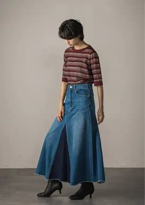 - nostalgic feering - どこか懐かしさを感じさせるカラーリングが今シーズンのトレンドを彩ります。トレンドのブラウンを含む女性らしいカラーデニム、秋にぴったりなレトロなペイズリーやマルチボーダー柄、異素材ミックスの進化系デニム、夏から秋へと季節をつなぐジャージー素材など、繊細なアイテムを女性らしく取り入れたコレクションを展開。 |