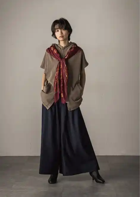 hoodie ¥10,800(+tax) stole ¥8,000(+tax) pants ¥15,000(+tax) |