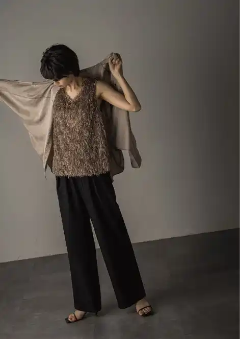 vest ¥29,000(+tax) tops ¥8,500 (+tax) pants ¥17,000(+tax) |