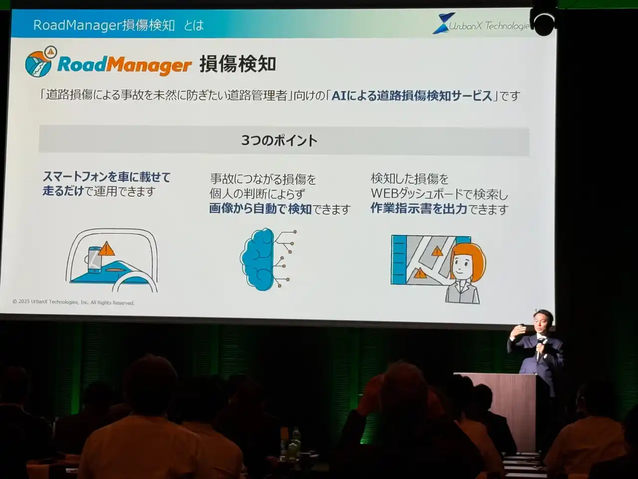 アーバンエックスは、「しなやかな都市インフラ管理を支えるデジタル基盤をつくる」をビジョンとして、AI道路管理システム「RoadManager」、市民協働投稿サービス「My City Report for citizens」、盛土管理DXシステム、三井住友海上火災保険株式会社と共同開発・運営している「ドラレコ・ロードマネージャー」などのプロダクトを、主に行政インフラ管理者向けに展開している、東京大学発のスタートアップです。サービス全体で累計40を超える自治体での導入実績をベースに、今後、当社技術を活用した民間事業者向けの展開も行いつつ、さらに多くの都市インフラを対象としたソリューションの提供を目指します。 |