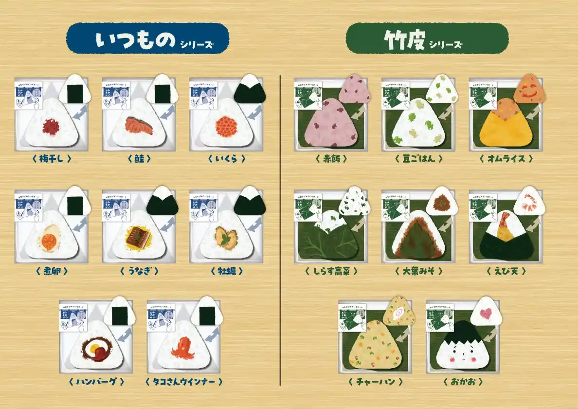 1.見た目も“味”も本物のおむすびのようなかわいらしさ 「ふみむすび」は、おむすび型のメッセージカードに、封筒とシールがセットになった商品です。おむすびの“味”が描かれたカードにメッセージを書き、おむすびのパッケージを模した封筒に入れて渡します。メッセージカードを贈る側には「あの人はどんな味が好きだろう?」と考えながら選ぶ楽しみを味わってもらい、受け取る側には「なに味のおむすびだろう?」と開ける楽しみを味わっていただけるよう、計16種類を展開します。
