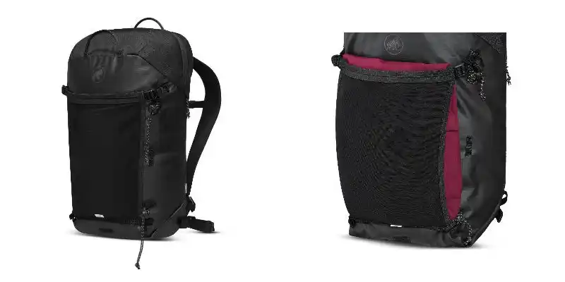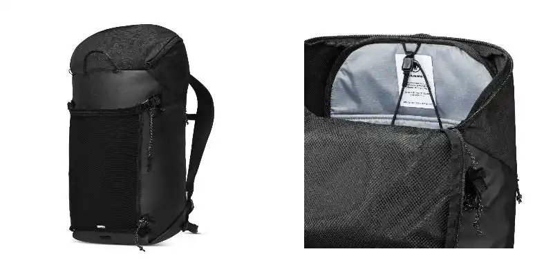 ラウンドファスナー式のワイドな開口部が荷物をしっかり収納でき、上からの物の出し入れがしやすい仕様になっています。さらに、サイドのファスナーから奥のアイテムにもアクセス可能。マムートで最高性能を誇るギアへのオマージュを込めた、通勤や日帰りハイキングなど幅広いシーンに対応する頼りになるバックパックです。 |