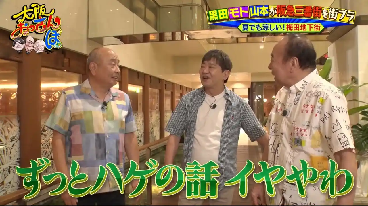 思わず黒田が「すごいですね、お2人のハゲ方」とつぶやくと、モトと山本は“ハゲ談義”で盛り上がり……「ずっとハゲの話イヤやわ」と黒田も呆れ顔!? |