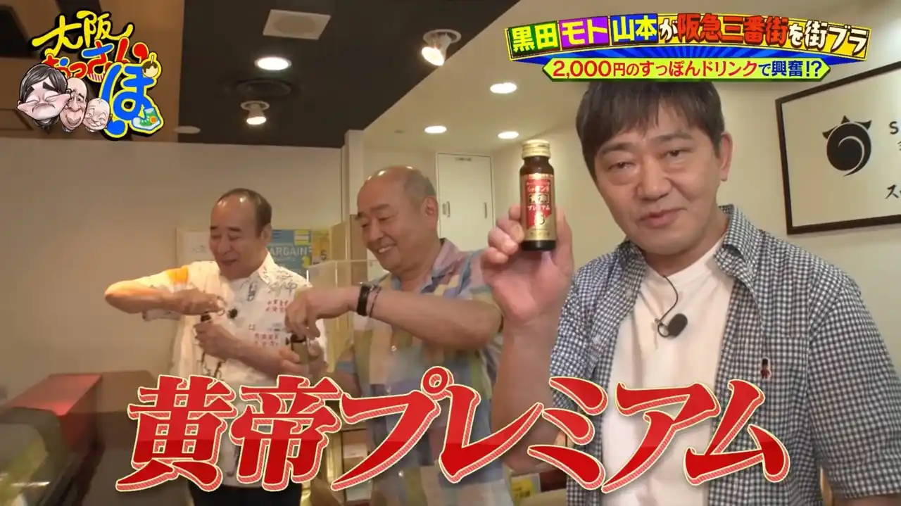 まず3人が見つけたのは、すっぽん専門店「金澤スッポン堂」。おすすめのすっぽんドリンクを試飲。「目が見開いた!」とモト。 |