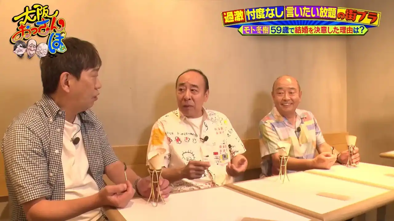 ソフトクリームを食べながら談笑しつつ、話題はいつしかモトの結婚の話に。芸能界屈指のプレイボーイとして名を馳せ、「結婚する気はなかった」というモトが59歳にして現在の奥様と結婚を決意した理由やプロポーズの言葉とは? |
