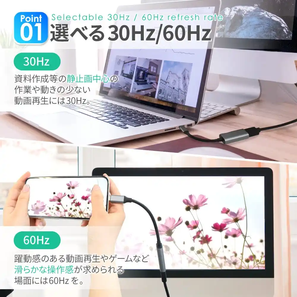 【使用シーンで選べる30Hz / 60Hz対応】 |