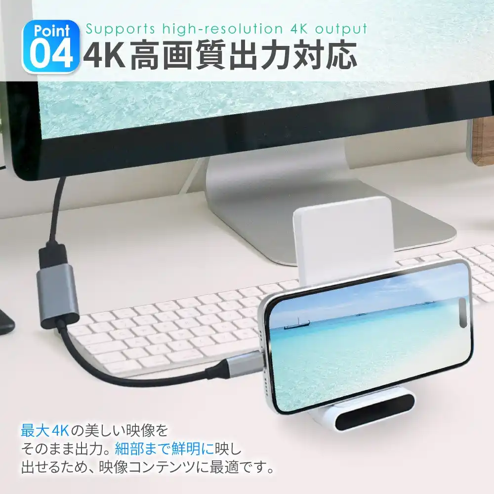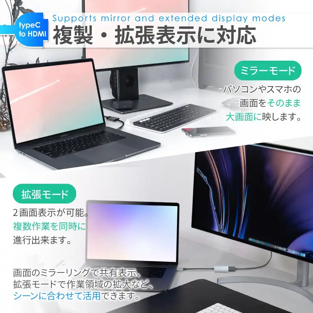 Type-Cポートに挿すだけで、スマートフォンやノートPCからHDMI出力が可能に。 プレゼンや動画視聴、ゲーム画面の投影など、日常からビジネスまで幅広く活躍します。 高級感あるアルミニウム合金ボディは、見た目だけでなく放熱性・耐久性にも優れています。 |
