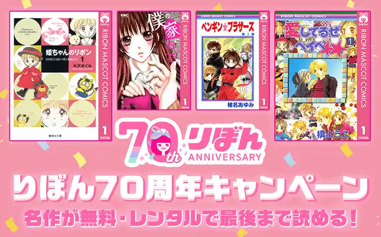 | 集英社の雑誌『りぼん』70周年記念キャンペーンを開催!名作が無料やレンタルでお得に読める! | |||