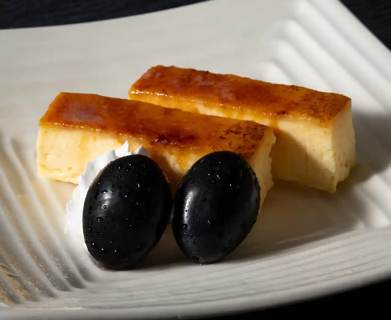 十勝カタラーナは、アイスのようになめらかな口どけと、香ばしく焦がしたキャラメルのほろ苦さが絶妙なバランスで、みずみずしくジューシーなナガノパープルの甘みと、カタラーナの濃厚でリッチな味わいが重なり合い、ひとくちごとに美味しさが広がります。 |