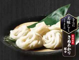 サガミの冷たいうどんは、愛知県産の小麦粉「きぬあかり」をブレンドし、のど越しともちもち感を楽しめる『細うどん』を使用しています。 |