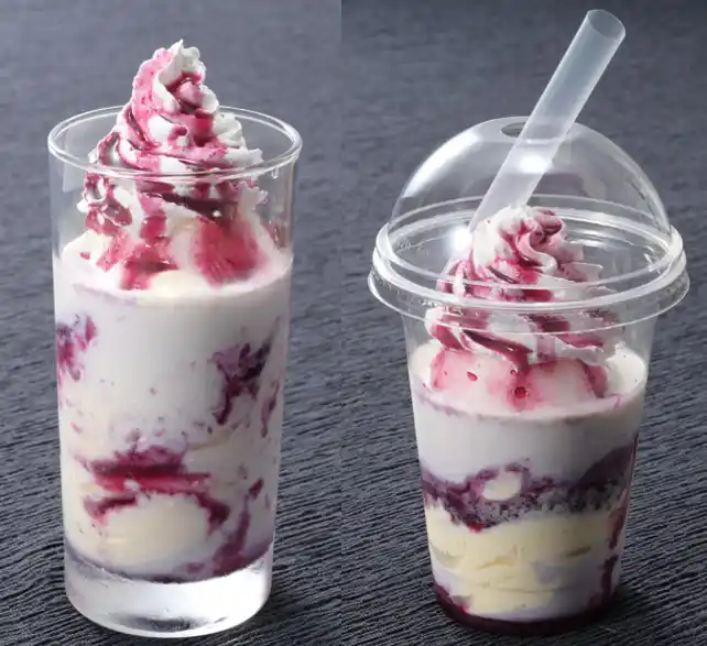なめらかなバニラ風味のシェイクに、ナガノパープルを使用したシロップを合わせました。バニラの優しい甘さとナガノパープルの爽やかな風味が交互に楽しめ、混ぜるごとに全体が一体となり、奥深い味わいへと変化します。ぜひ、ナガノパープルの新しい美味しさをご堪能ください。店外でもお楽しみいただけるよう、テイクアウトもご用意しました。※写真_右 |