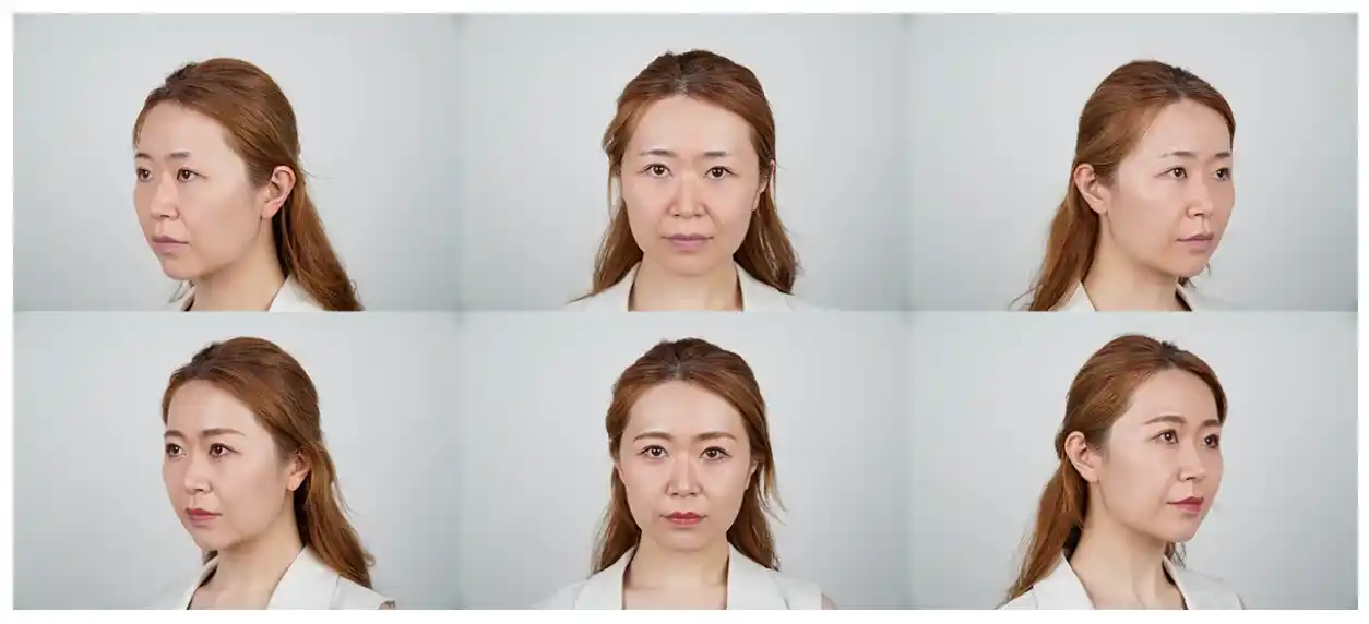 マルチアングル・表情差なしの顔画像構成は、仮想空間での顔生成・フェイスカスタマイズモデルの学習に最適。VTuber・アバター会議・接客AIなどで使用されます。 |