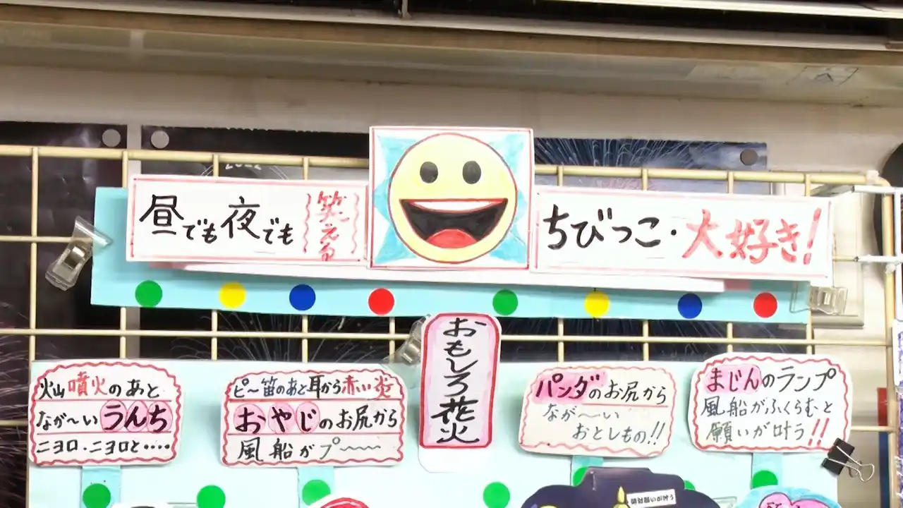 元は造花屋さんとしてスタートし、花火好きのオーナーのこだわりで花火専門店へと変貌しました。花火の特徴やイラストが描かれた手作りPOPも人気で、お客様へ分かりやすく花火情報を提供しています。 |