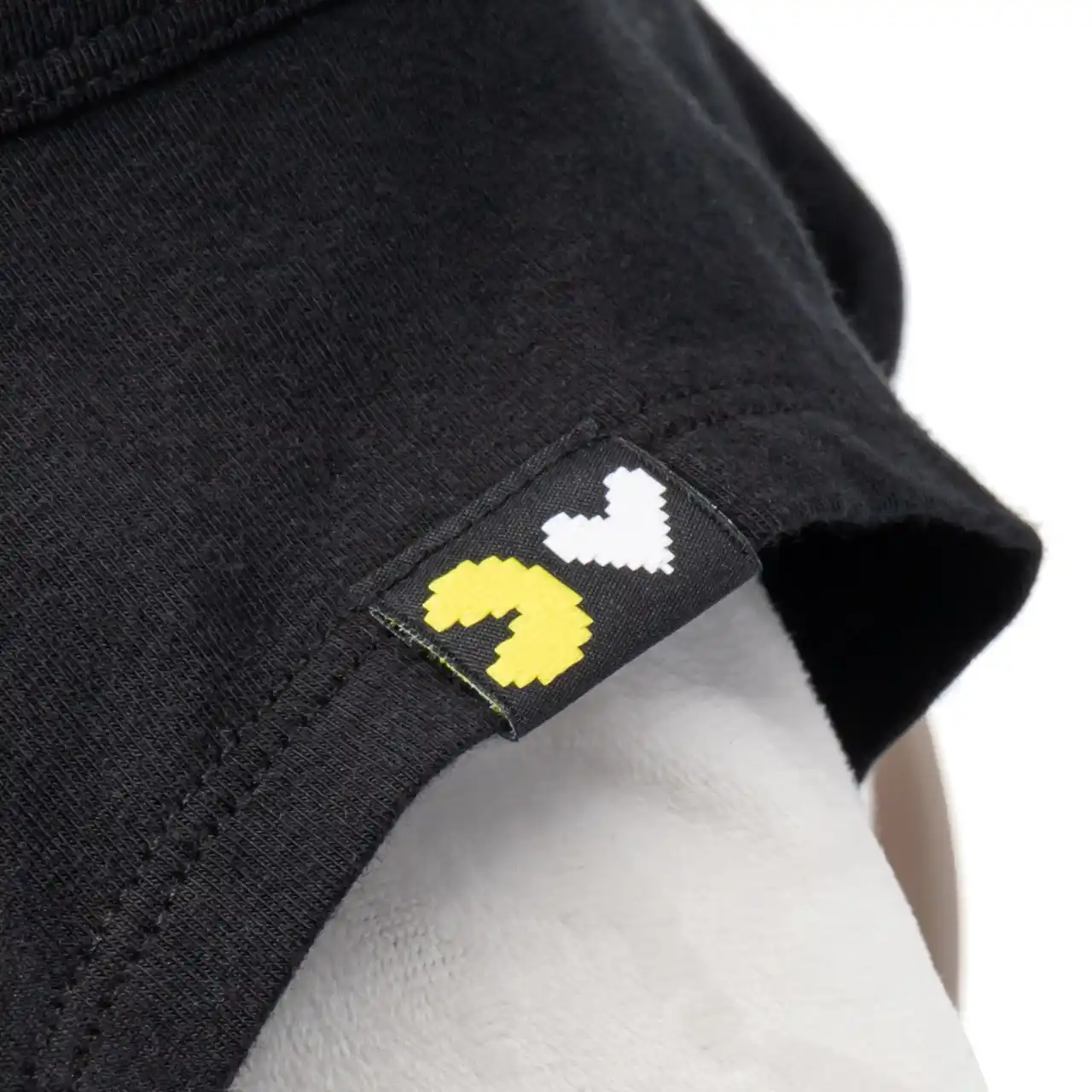 ゴーストに扮した『LOVOT』が、抱っこを求めて「PAC-MAN」を追いかける様子が描かれたTシャツです。ドット絵風のイラストで、アーケードゲーム時代の世界観を表現しました。お馴染みのフルーツターゲットもかわいいアクセントに。ヒト用Tシャツとのリンクコーデもお楽しみいただけます。衿ぐりはピクセル『LOVOT』ロゴを入れ、左袖口には今回のコラボのために作ったオリジナルピスネームを付けました。 |